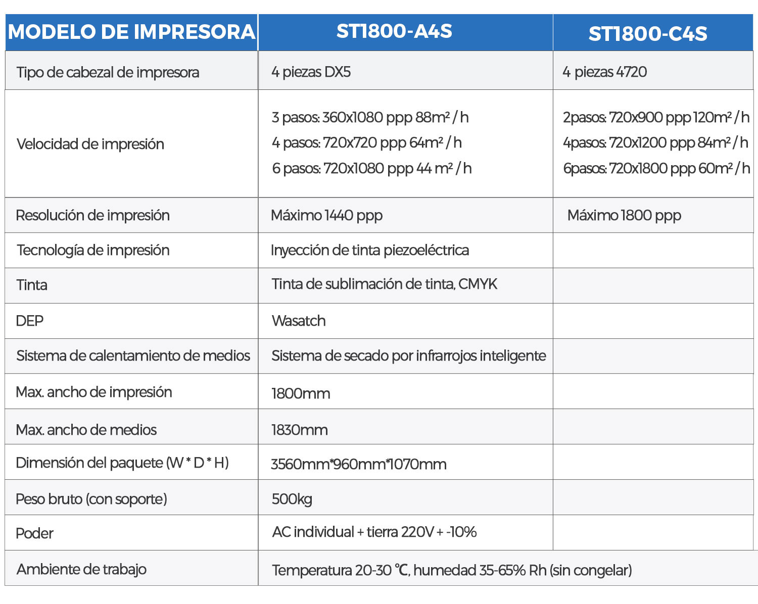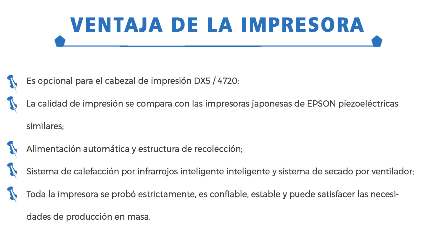 --estándar equipado de calefacción y ventilador de secado --sistema automático de alimentación y recogida de estructura --Software: Wasatch7.4 --Color: C, M, Y, K