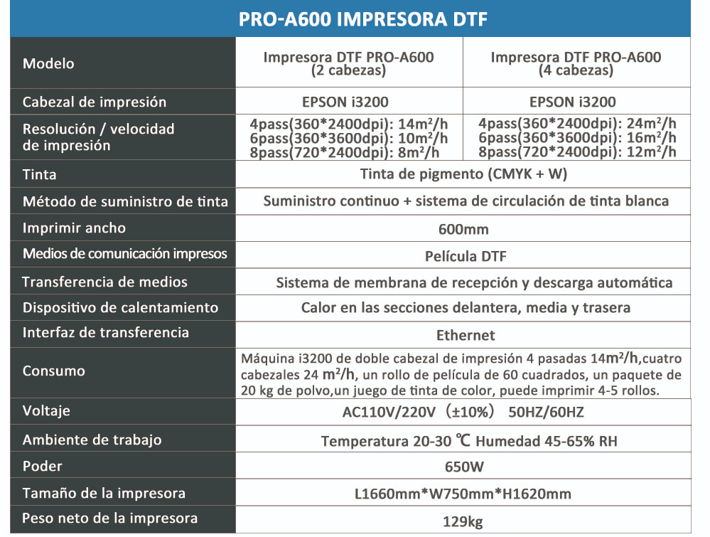 La impresora Hanrun paper® PRO-A600 DTF es una impresora DTF especialmente desarrollada para aquellos clientes que buscan alta calidad y producción en masa La serie Pro es una serie insignia de alta gama desarrollada por nosotros, en comparación con la serie EVO, la serie pro tiene un mayor nivel continuo estabilidad de impresión, más compatibilidad de software, mejor precisión de impresión y también tiene una garantía de medio año más. El dispositivo de impresión DTF es la solución DTF más avanzada del mercado. En comparación con otros sistemas de hardware, la impresora DTF tiene muchas ventajas en comparación con otras máquinas (incluida la transferencia de tóner o incluso la DTG de alta gama). El tamaño de impresión de la impresora DTF PRO-A600 es de 60 cm o 24 pulgadas.