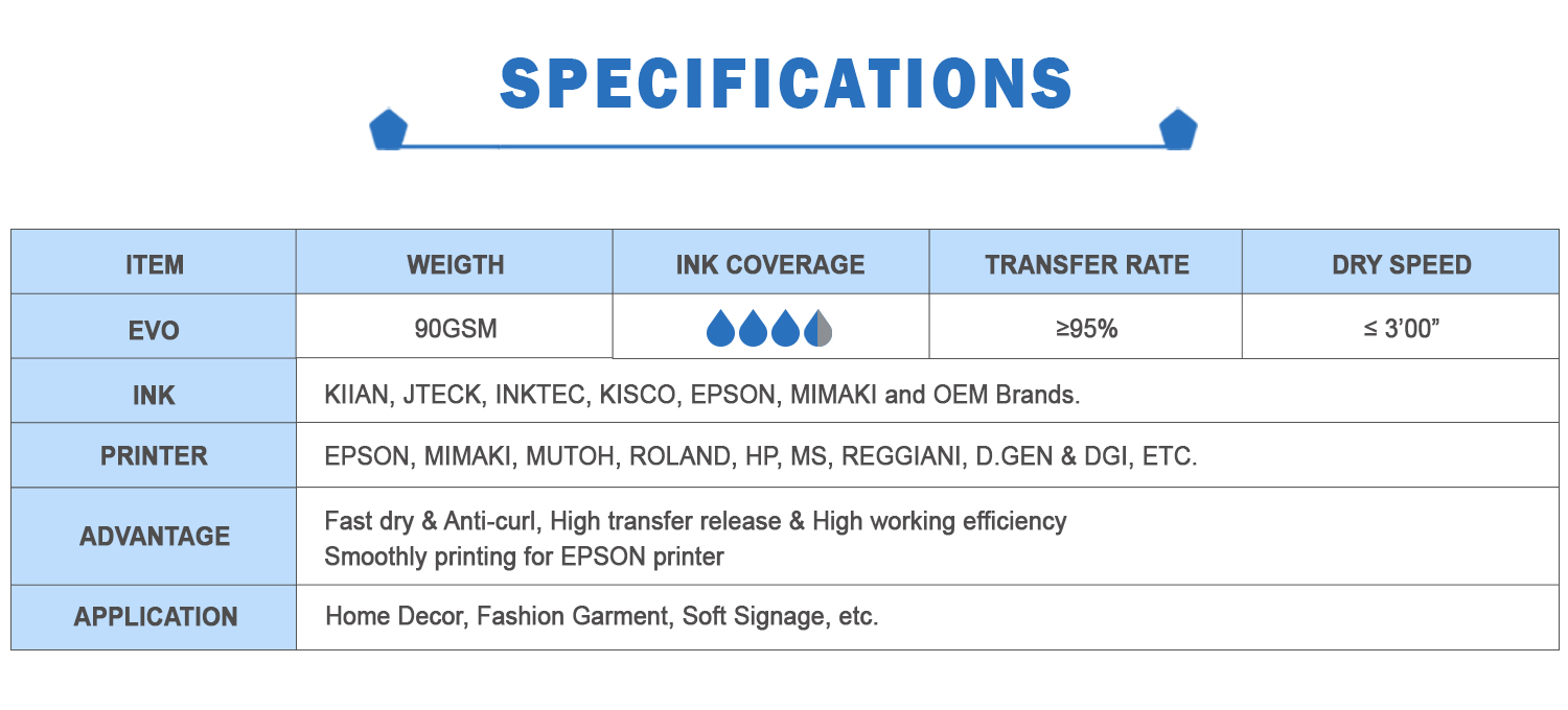 Subtextile desarrolló este documento de sublimación para Epson Surecolor F-10000/ F-10080. Este documento utiliza una nueva base de papel esta vez y tiene un rendimiento ultra alto: doble revestimiento, anti-curvado, seco rápido y excelentes colores de transferencia. Puede imprimir con cobertura de tinta media a alta. Es ideal para su uso en esta nueva impresora Epson, y funciona perfectamente con Epson Ink. Con este papel de sublimación, podrá imprimir y transferir colores muy profundos con un rendimiento de transferencia máximo. Adecuado para varios artículos de bricolaje, personalizados y de alta calidad de ropa.
